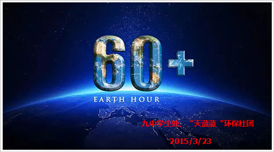 亲爱的家长、老师,同学们,在不可再生能源越来越少的今天,让我们每个人都承担起应尽的责任,为了我们共同的地球,请大家一起来,创造这个美丽的“黑暗时刻”,“地球一小时”是带来希望和变革的契机。行动起来吧,尽我所能,守护蓝天!