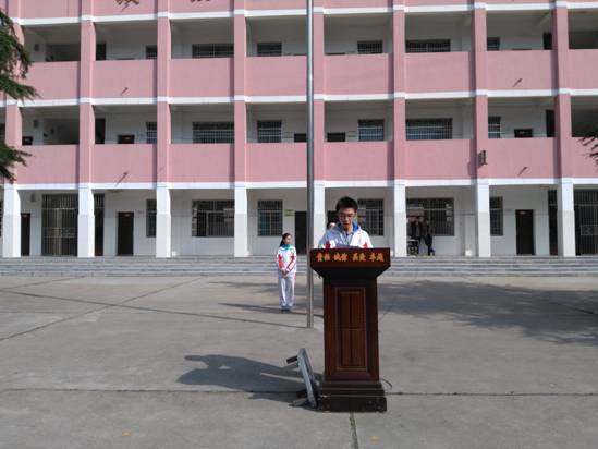 时间:2016-02-29 地点:实验楼前坪 主题:艾鑫宇同学主持九年级升旗仪式 时间:2016-02-29 地点:实验楼前坪 主题:吕诗卉、谢廷玉、余诗颖同学担任旗手 时间:2016-02-29 地点:实验楼前坪 主题:2016年上学期第一次升旗仪式 时间:2016-02-29 地点:实验楼前坪 主题:九年级年级主任胡香华老师作中考动员讲话 时间:2016-02-29 地点:实验楼前坪 主题:九年级学生代表202班李维怡同学作备战中考的宣誓