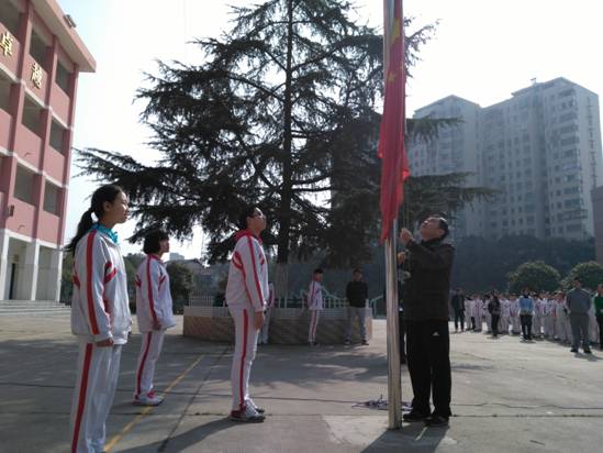 2016年2月29日上午,岳阳市第九中学举行了第一次升旗仪式暨九年级中考动员大会。升旗仪式第一项:升国旗,奏国歌;仪式第二项:九年级年级主任胡香华主任作国旗下讲话—端正态度、找到方法、咬定目标、再创辉煌;仪式第三项:学生代表202班李维怡同学作备战中考的宣誓。