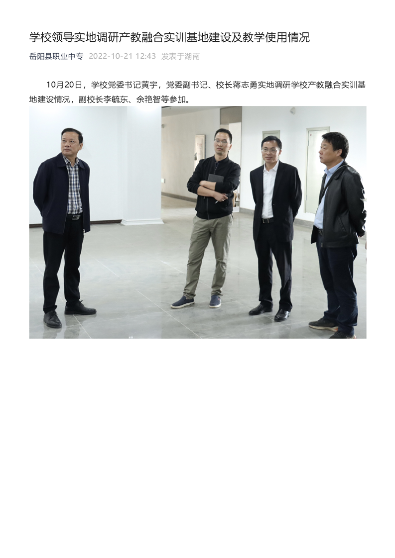 学校领导实地调研产教融合实训基地建设及教学使用情况