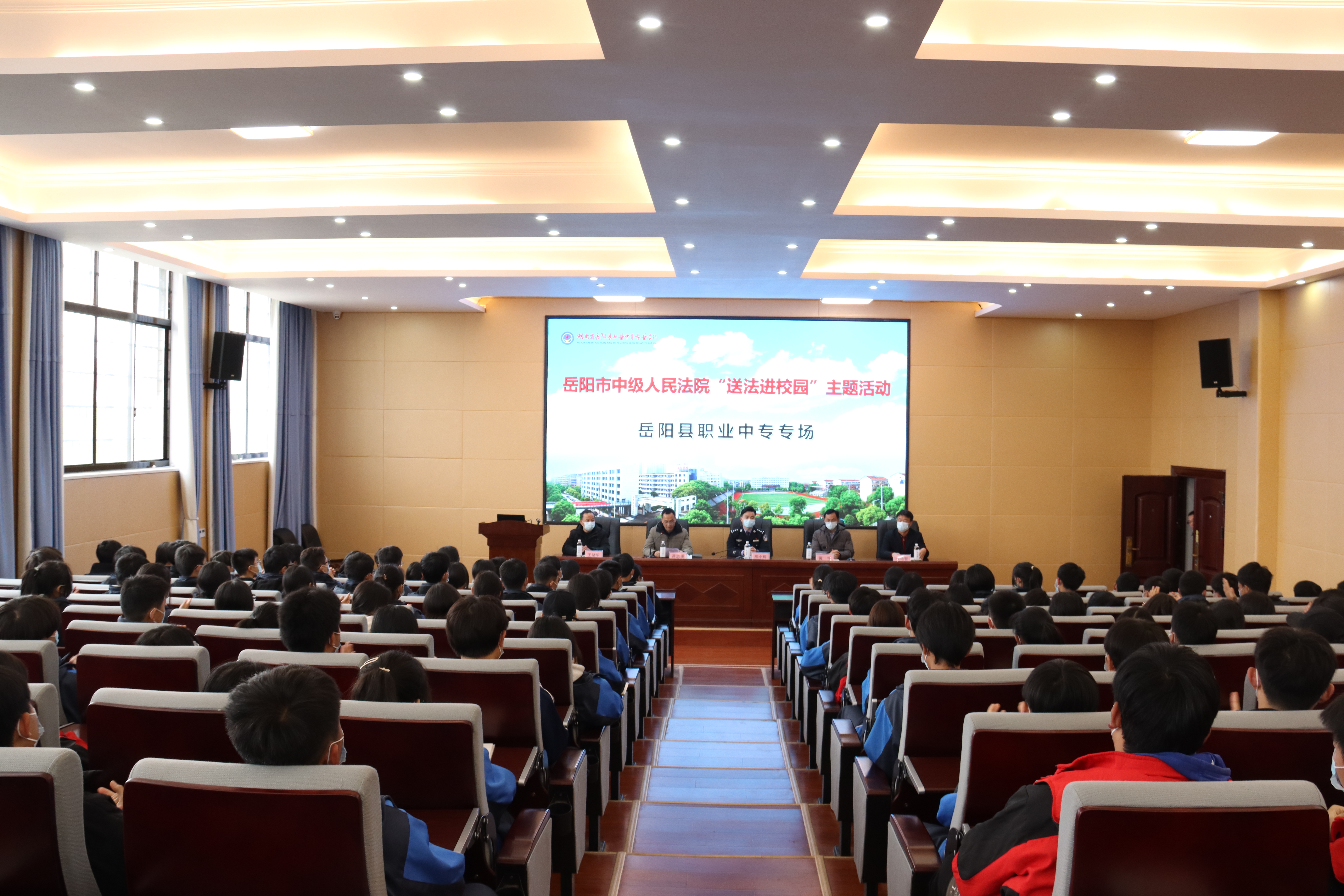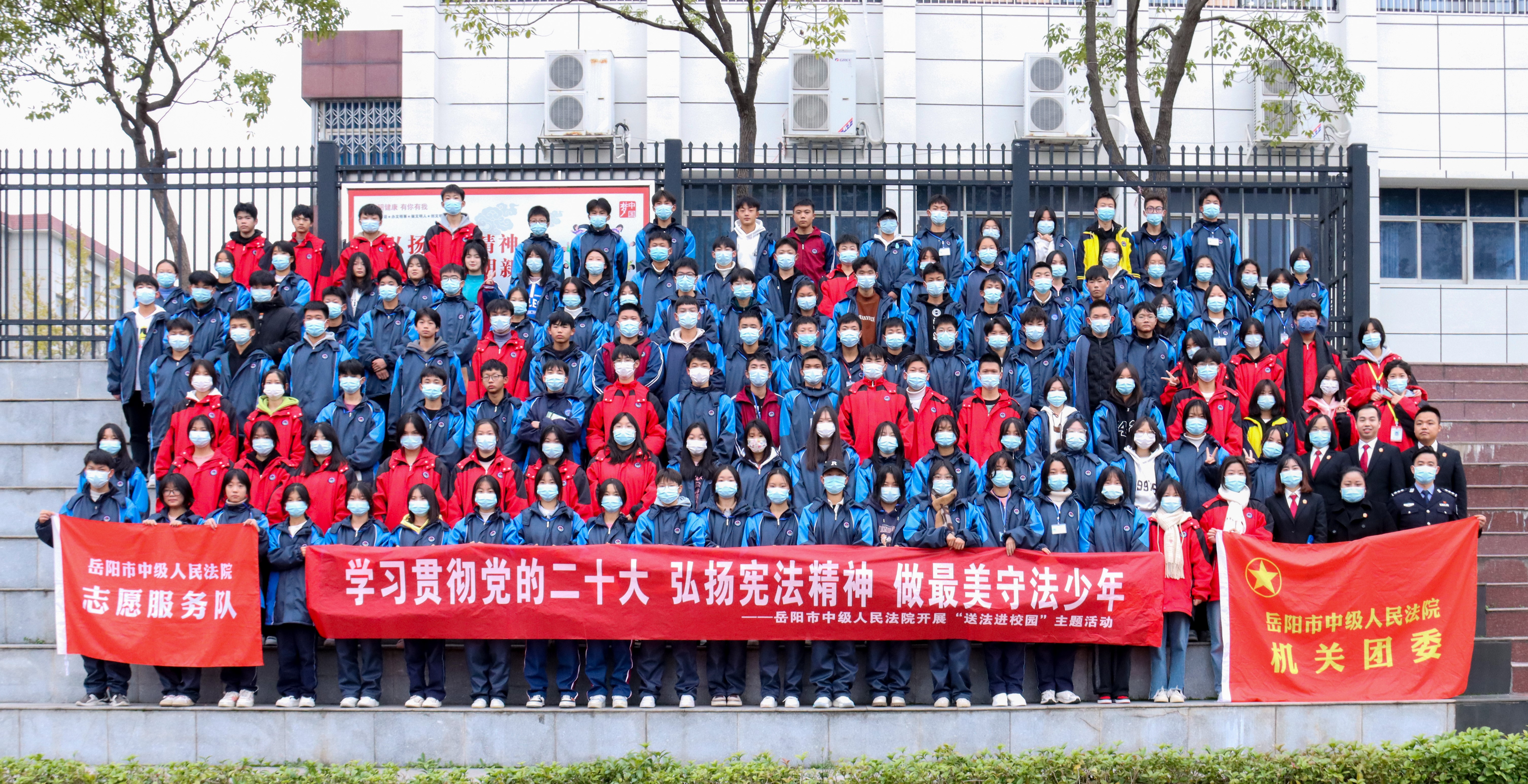 为了加强对在校学生的法治宣传教育,增强未成年人的法治观念和自我保护意识。12月8日,岳阳市中级人民法院应邀莅临我校开展“学习贯彻党的二十大精神,弘扬宪法精神,做最美守法少年”主题活动。