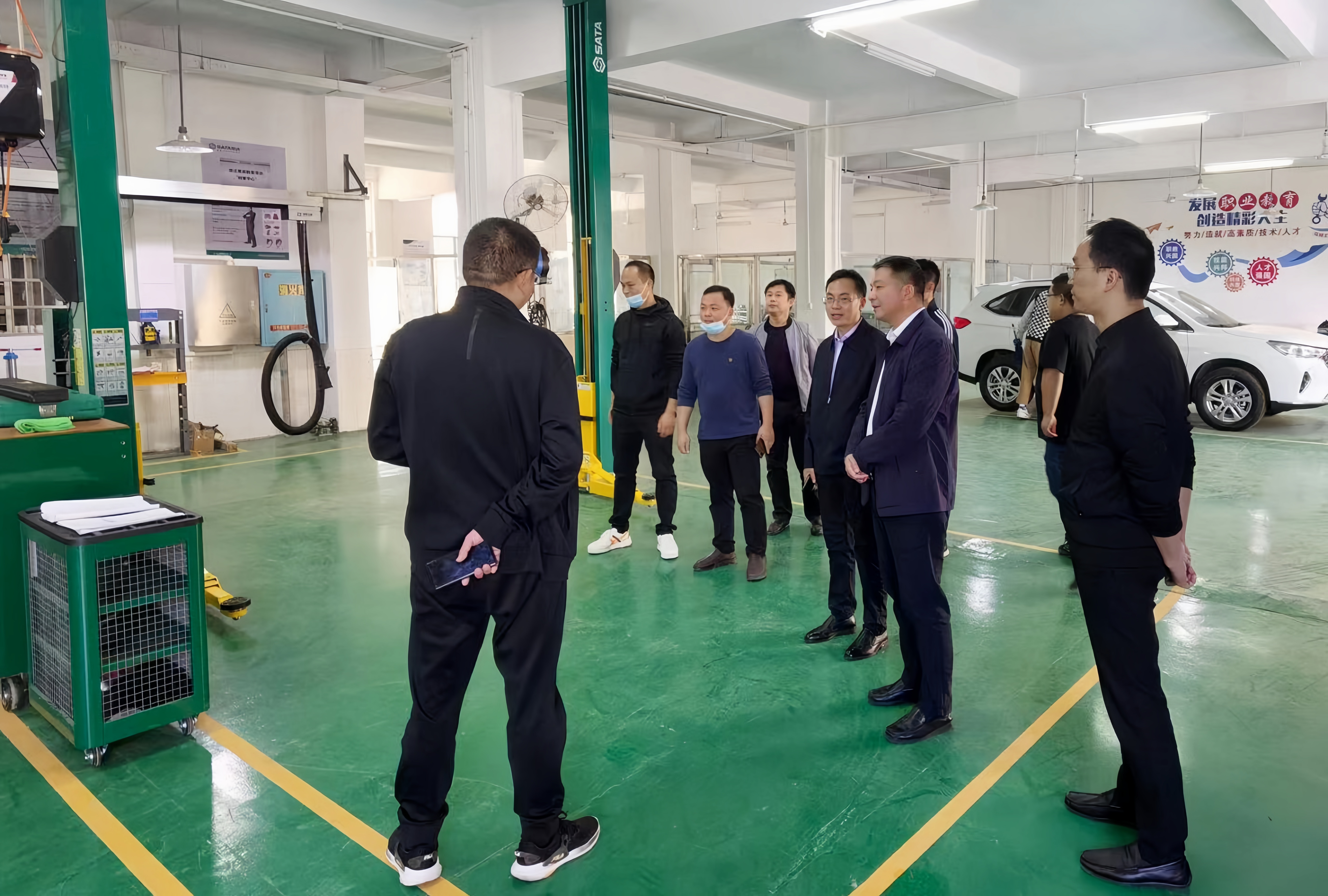 学校班子成员陪同县人民政府续广宁副县长察看实训基地