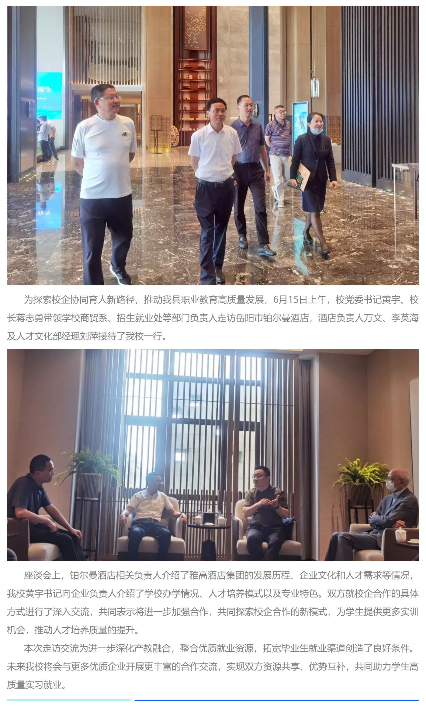 产教融合 共谋发展|我校赴岳阳市铂尔曼酒店开展校企合作交流