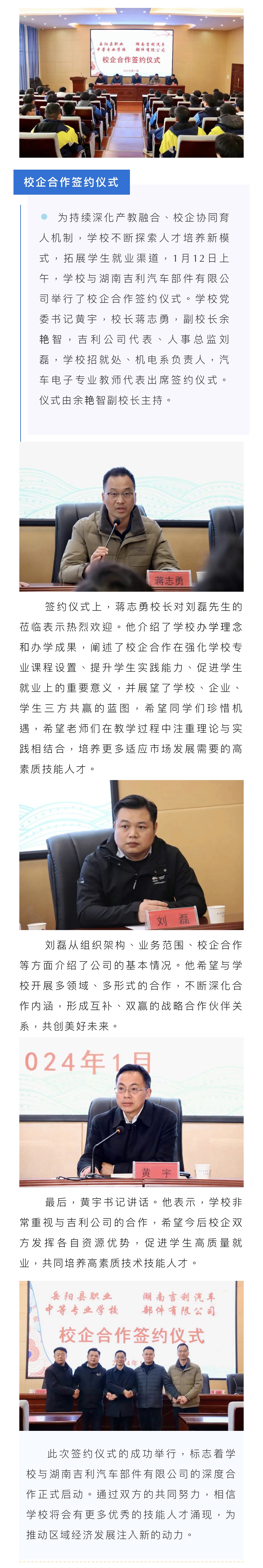 牵手世界五百强,提升育人新水平|学校与湖南吉利汽车部件有限公司签订校企合作协议